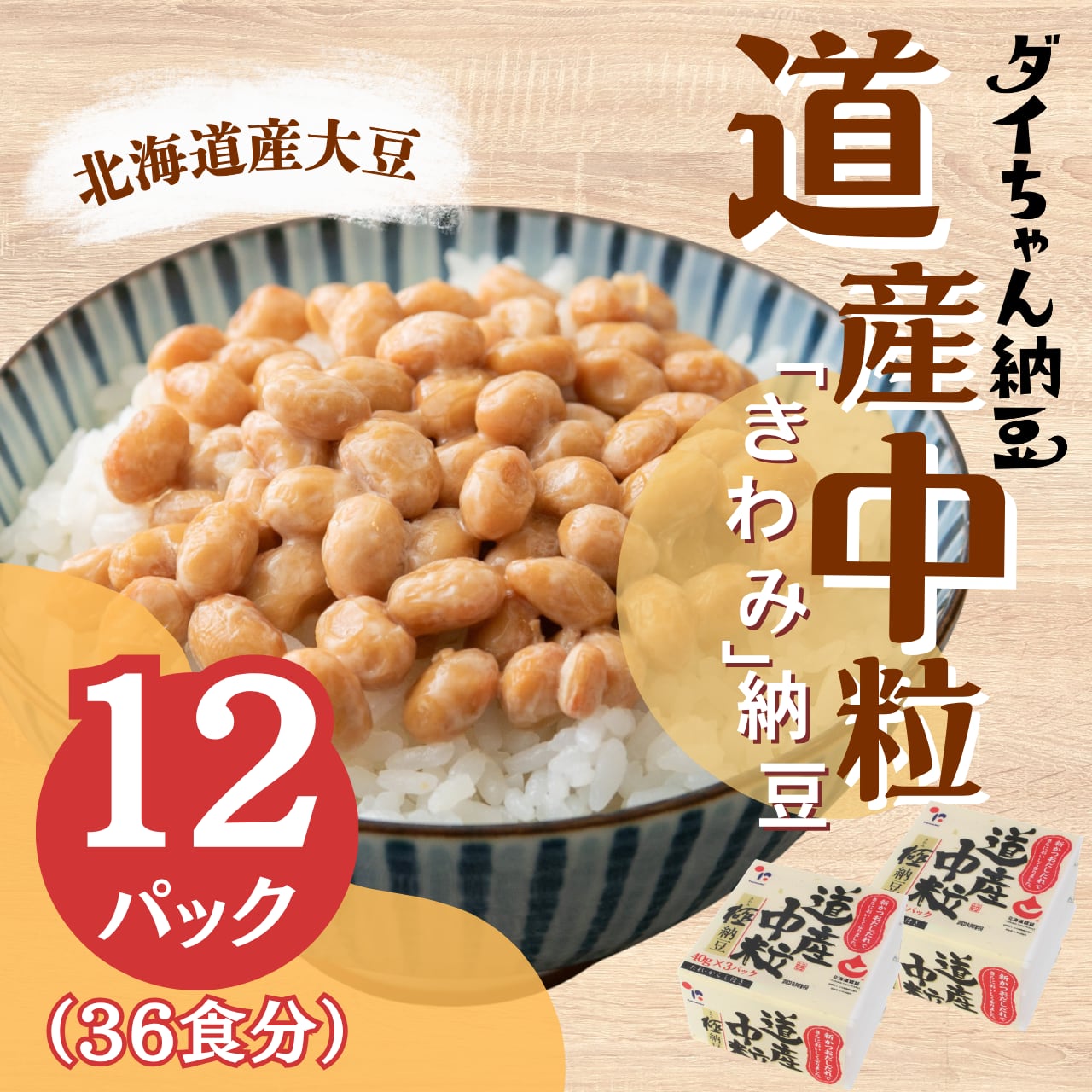 道産中粒極納豆3P 12個入